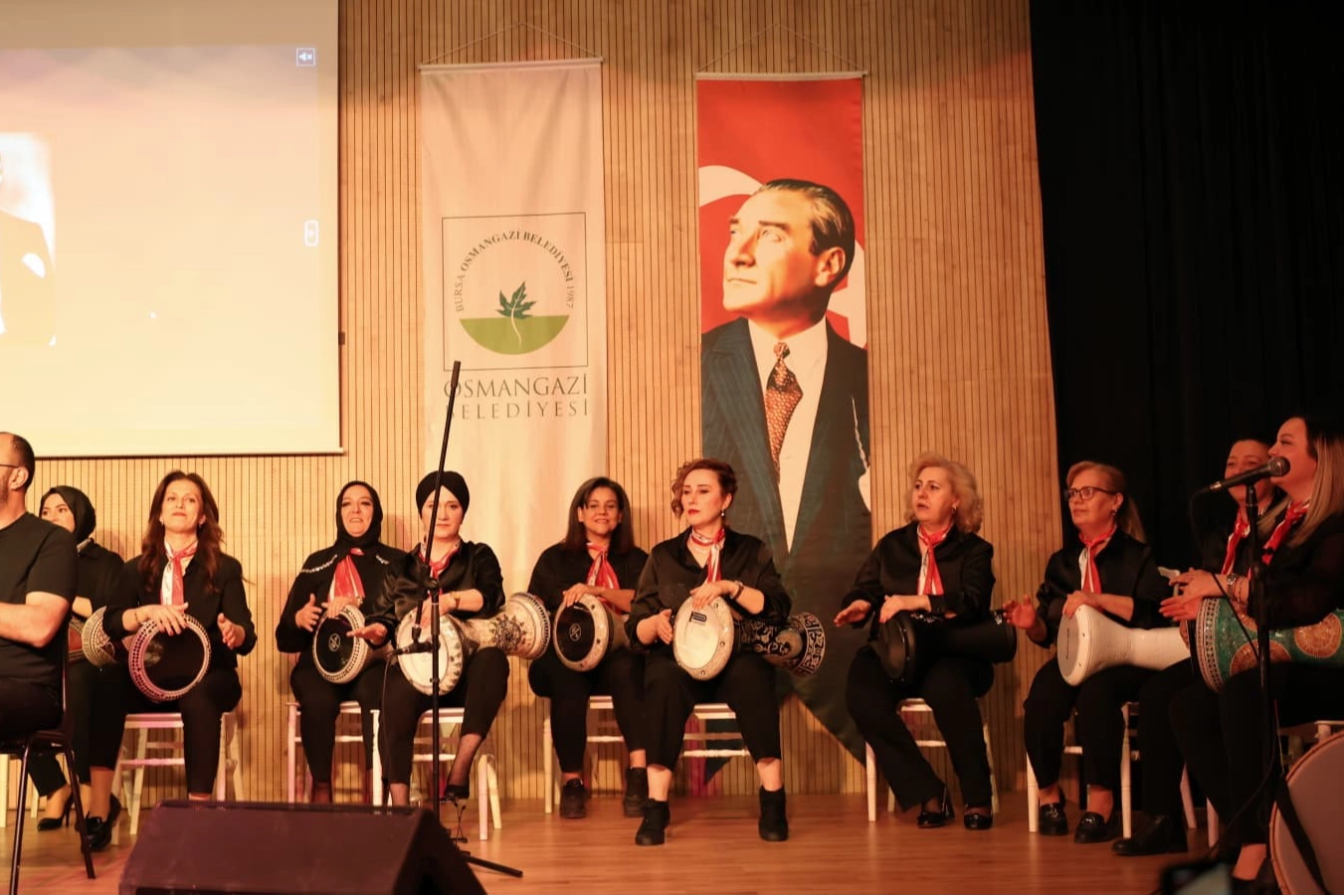 Osmangazi Gösteri Merkezi’nde düzenlenen konserde kadınlar, büyüleyici darbuka performanslarıyla izleyenlere unutulmaz bir gece yaşattı. Atatürk’ün sevdiği şarkıların seslendirilmesiyle başlayan konser, Ahenka Kadın Ritim Topluluğu’nun etkileyici ritim gösterisiyle tamamlandı. Kültür ve sanatın harmanlandığı bu özel geceyi kaçırmak istemeyen sanatseverler, salonu tamamen doldurarak ritimlere alkışlarıyla katıldı.