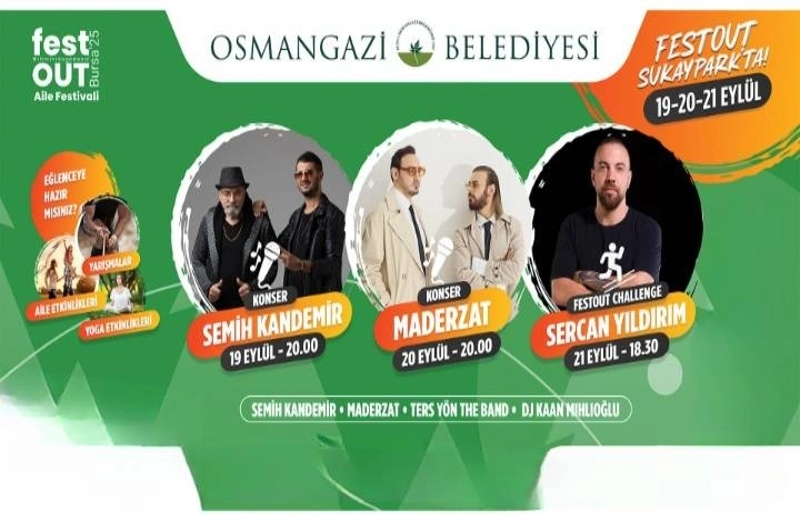 Osmangazi Belediyesi tarafından düzenlenen FestOut Bursa 2025 Aile Festivali, 19-20-21 Eylül tarihleri arasında Sukaypark’ta gerçekleştirilecek.