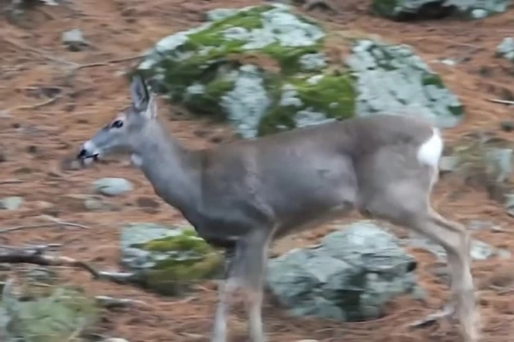 Bölgede kayıt alan bir fotokapan tarafından kaydedilen görüntülerde zıplayarak dolaşan karaca yer aldı.