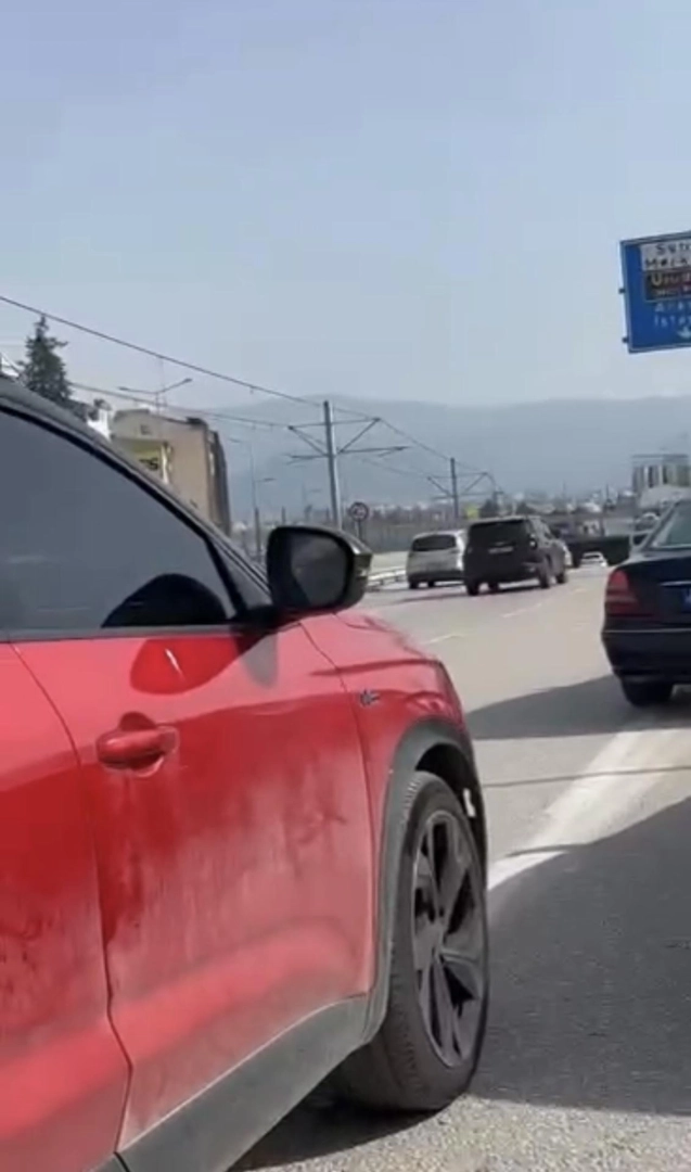 Olay, merkez Nilüfer ilçesi Sanayi Caddesi üzerinde meydana geldi. Trafikte şerit ihlali yapan kadın sürücü, ana arterden ara yola girmek istedi. O sırada trafikte bekleyen başka bir kadın sürücü, sürücüye yol vermeyerek korna ile ikaz etti. Duruma sinirlenen sürücü, araçtan inerek hamile olduğu iddia edilen kadın sürücünün aracına zarar verdi. İlginç anlar saniye saniye amatör kamera ile kaydedilirken, kavga ise bir vatandaşın araya girmesi ile son buldu.