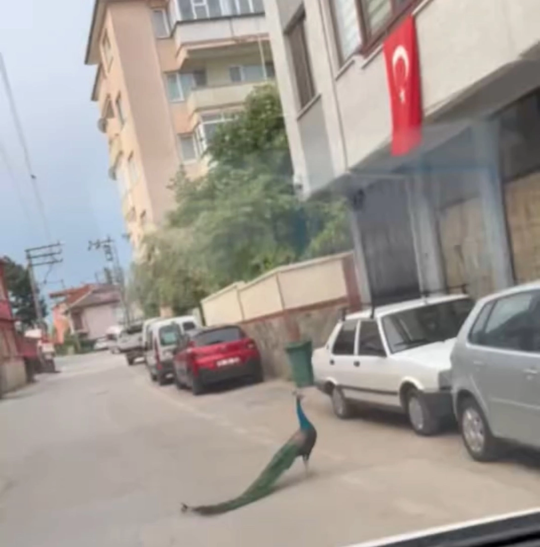 Olay, sabah saatlerinde meydana geldi. Osmangazi ilçesi Hamitler Mahallesi'nde sokak aralarında ilerleyen bir sürücü, yol ortasında dolaşan tavus kuşunu fark edince aracını yavaşlattı. Egzotik görünümüyle dikkat çeken kuş, bir süre yolda ilerledikten sonra yol kenarına doğru yöneldi. O anları kayda alan sürücünün şaşkınlığını arkadaşlarıyla paylaştığı anlar ise kameraya yansıdı.