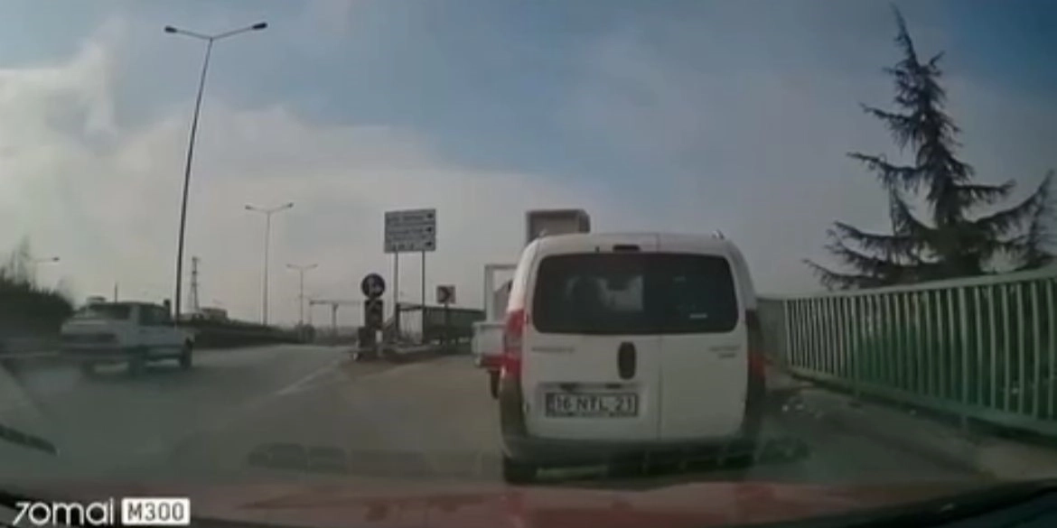 Olay, merkez Osmangazi ilçesi İstanbul Yolu Caddesi köprülü kavşak üzerinde meydana geldi. Sürücüsü ve plakası henüz öğrenilemeyen hafif ticari araç, yolu kaçırdı. Arkasına bakmadan geri manevra yapmak isteyen araç, diğer sürücüleri de zor durumda bıraktı. Korna ikazlarına aldırış etmeyen dikkatsiz sürücü, hiçbir şey yokmuş gibi yoluna devam etti. İlginç anlar saniye saniye araç içi kamerasına yansıdı.