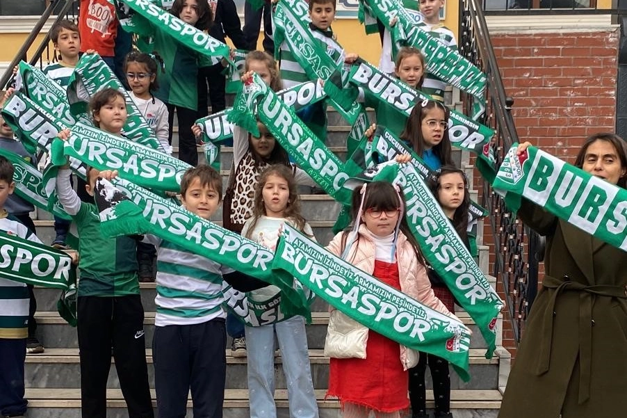 Bursa'nın en köklü eğitim kurumlarından Tophane İlkokulu'nda 2-B sınıfı öğrencileri karnelerini alıp Hoba projesi kapsamında atkılarıyla dans etti. Öğretmenleri Arzu Bilgen Kösen de bu coşkuya ortak oldu. Bursaspor atkılarıyla poz veren öğrenciler, takımlarının bu sezonu da zirvede tamamlayıp Süper Lig yolunda emin adımlarla yürüyeceğine inanıyor.