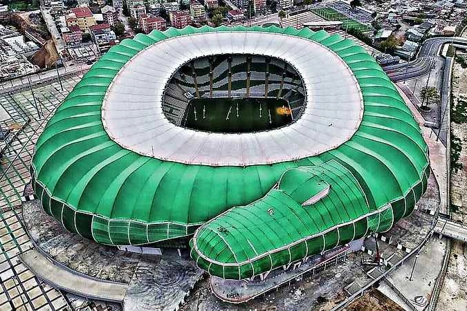 Timsah formunu andıran tasarımıyla bilinen stadyum için yapılan paylaşımda “dünyanın en havalı stadyumu” ifadeleri kullanıldı.