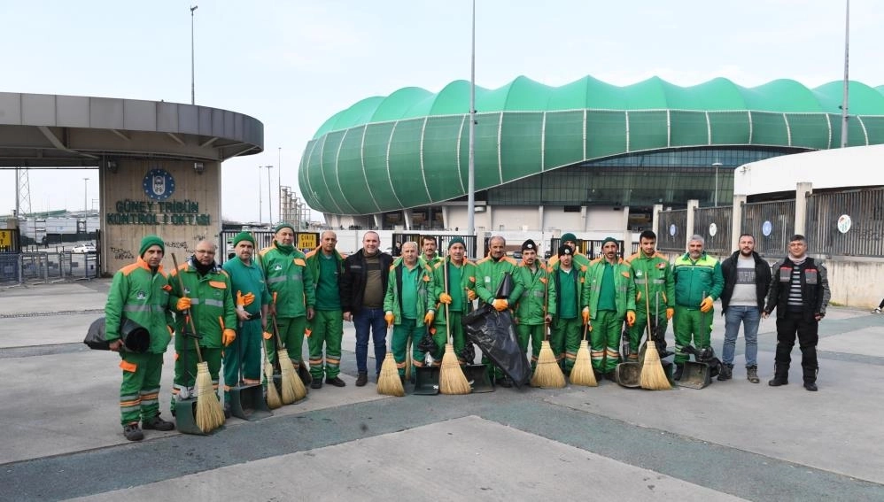 Osmangazi Belediyesi Temizlik İşleri Müdürlüğü ekipleri, bu hafta oynanan ve Bursaspor’un 2-0 kazandığı Ergene Velimeşespor karşılaşmasının ardından temizlik çalışması gerçekleştirdi. Stadyum çevresinde, koridorlarda ve tribünlerde iki gün boyunca temizlik çalışması yürüten ekipler, 43 bin 361 kişi kapasiteli dev stadyumu baştan aşağı temizleyerek bir sonraki karşılaşma için hazır hale getirdi.