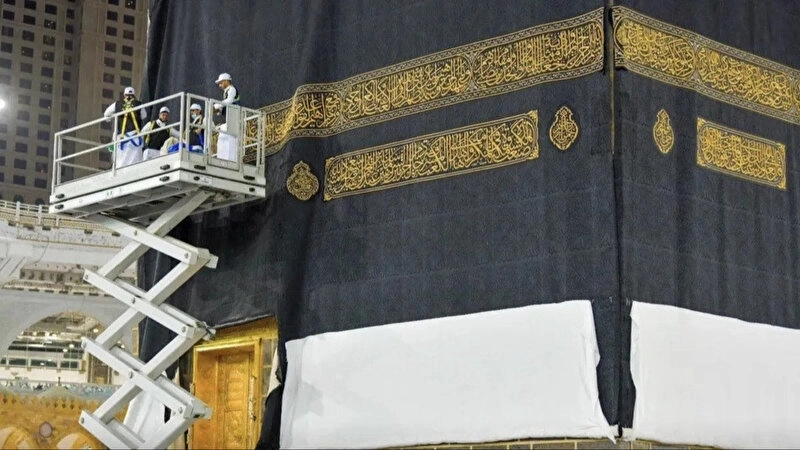 Suudi Arabistan'ın Mekke kentinde yer alan İslam dünyasının en kutsal yapısı Kâbe'nin örtüsü (Kisve) geleneksel törenle yenilendi. Her yıl hicri yılbaşında gerçekleştirilen bu işlem kapsamında, üretimi yaklaşık 11 ay süren yeni örtü, sabitlenmesi için 60 altın halka kullanılarak yerine yerleştirildi.
