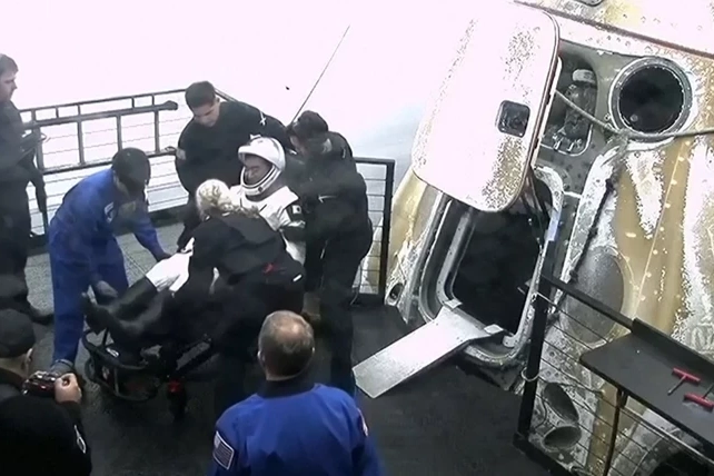 Uluslararası Uzay İstasyonu'ndan (ISS) ayrılan astronotları taşıyan kapsül, NASA'nın ilk tıbbi tahliye operasyonu kapsamında California eyaletinin San Diego kenti açıklarında Pasifik Okyanusu'na iniş yaptı.