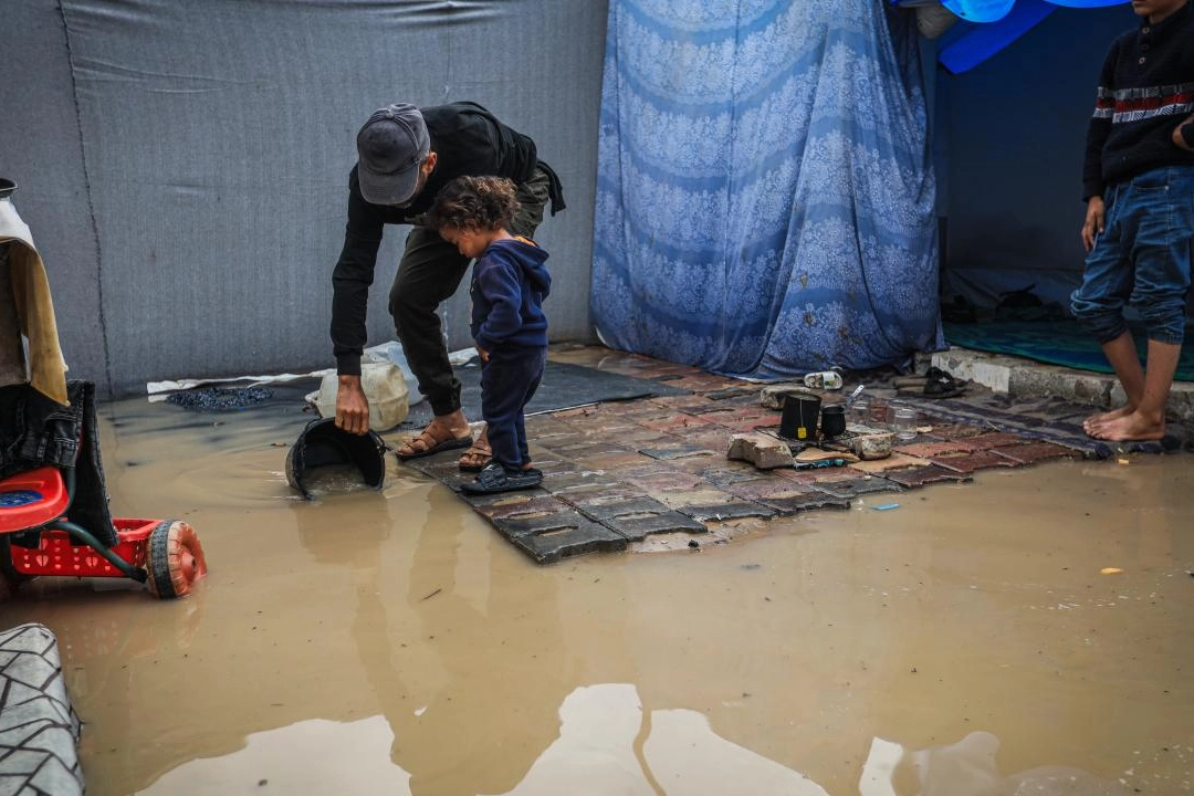 Eşyaları su altında kalan ve soğuktan korunma imkânlarını da yitiren Filistinliler, yetkililerden acil yardım talebinde bulundu.