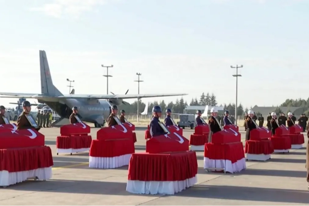 Azerbaycan'dan Türkiye'ye gelmek üzere havalanan ve Gürcistan'da düşen askeri kargo uçağımızda şehit olan 20 vatan evladı, Ankara'ya getirildi.
