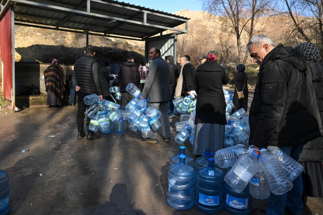 Evlerine su götürmek için ellerinde bidonlarla sıraya girenler, çeşmede uzun kuyruklar oluşturuyor.