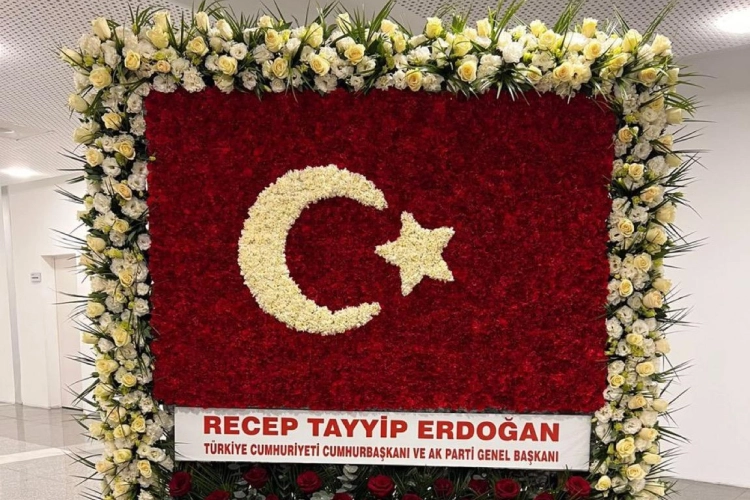 Hazırlanan özel tasarımın orta kısmında yer alan beyaz bantta, "Recep Tayyip Erdoğan - Türkiye Cumhuriyeti Cumhurbaşkanı ve AK Parti Genel Başkanı" ifadesi yer aldı.