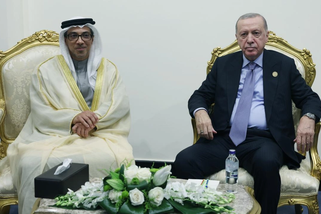 Erdoğan, bu kapsamda ilk olarak, Birleşik Arap Emirlikleri Veliaht Prensi Mansur bin Zayid Al Nahyan ile bir araya geldi.