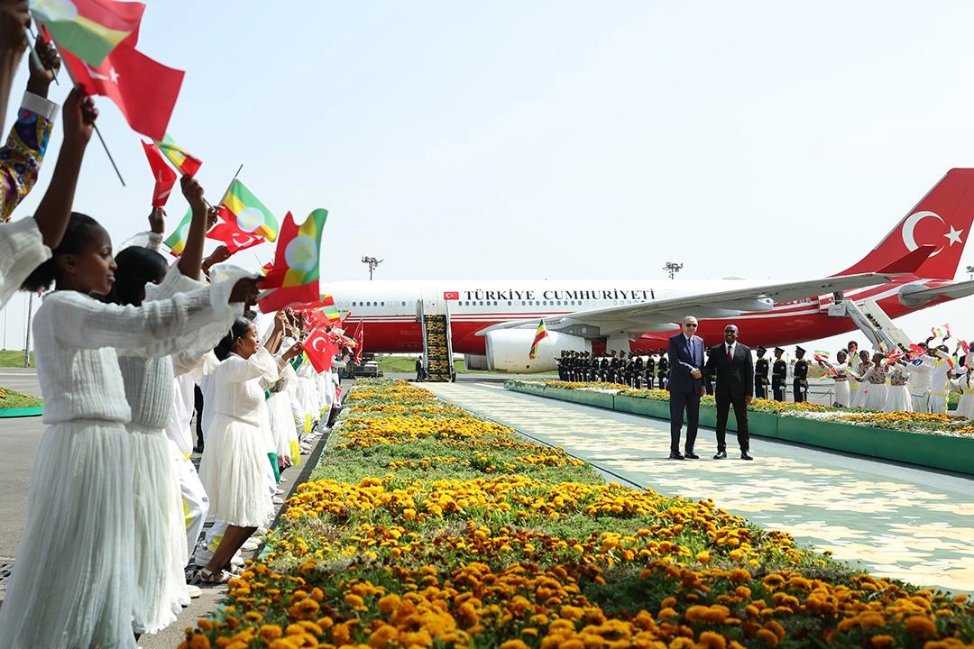 Öte yandan, Cumhurbaşkanı Erdoğan'ın Etiyopya'ya gelişi dolayısıyla Addis Ababa'da cadde, kavşak ve köprülerdeki billboardlarda "Welcome to Ethiopia" yazısı ile Erdoğan'ın fotoğrafı ve Türk bayrağı yer aldı.