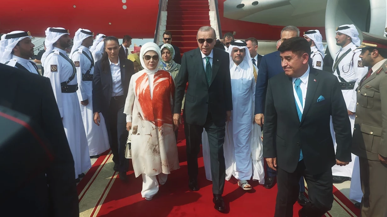 Erdoğan'ı, Uluslararası Hamad Havalimanı'nda Katar Başbakan Yardımcısı ve Savunma Bakanı Şeyh Suud bin Abdurrahman Al Sani, Dışişleri Bakanı Hakan Fidan, Türkiye'nin Doha Büyükelçisi Mustafa Göksu ile Büyükelçilik mensupları karşıladı.