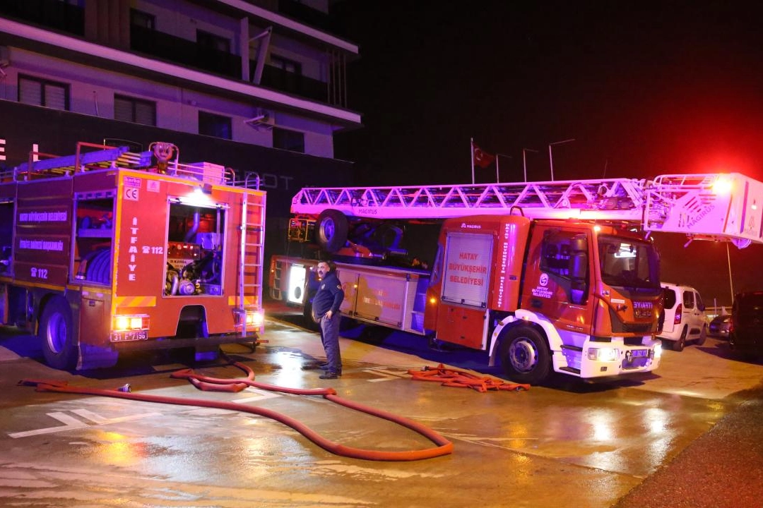 Öte yandan, Belen Kaymakamı Onur Şan ve Belen Belediye Başkanı İbrahim Gül de yangının çıktığı binada incelemede bulundu.