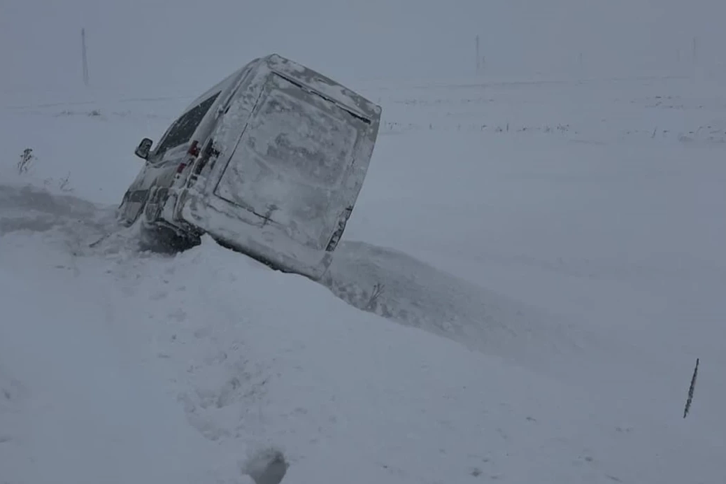 Kars'a giden İrfan Ş. idaresindeki 53 ABS 224 plakalı yolcu minibüsü, Ardahan-Kars kara yolunun Hasköy mevkisinde kara saplandı.