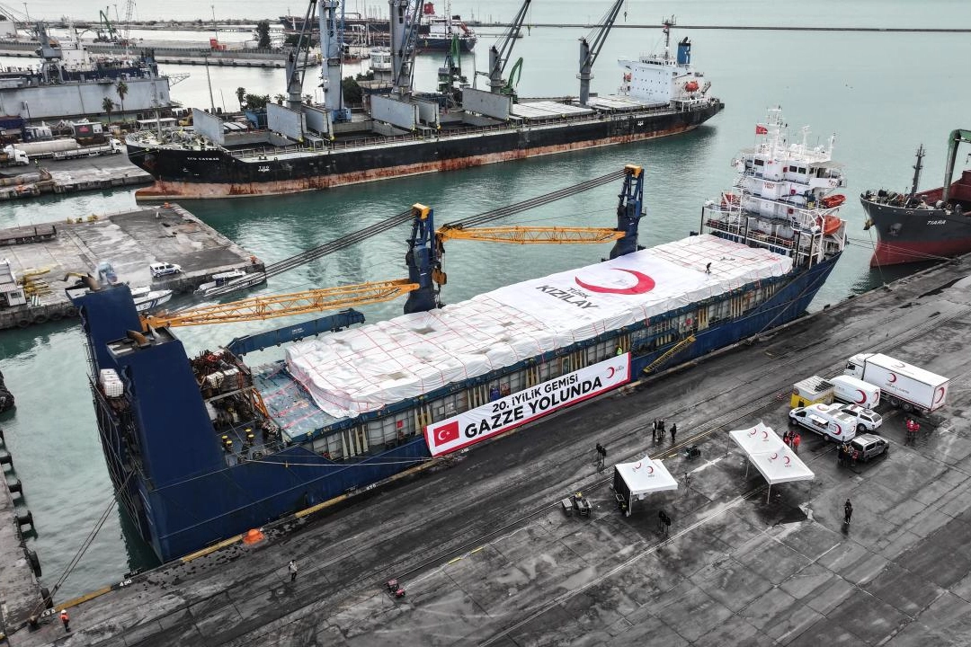 Bu kapsamda Türk Kızılay tarafından hazırlanan ve gıda, hijyen, giyim, battaniye, barınma ve bebek malzemeleri ağırlıklı yaklaşık 1400 ton temel insani yardım malzemesinin yer aldığı "İyilik Gemisi"nin uğurlanması için Mersin Uluslararası Limanı'nda tören düzenlendi.