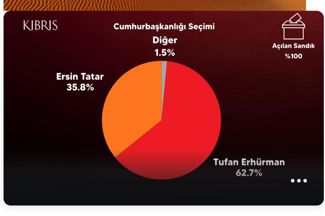 Resmi olmayan sonuçlara göre, cumhurbaşkanlığı seçimini Cumhuriyetçi Türk Partisi Genel Başkanı Tufan Erhürman’ın kazandı.