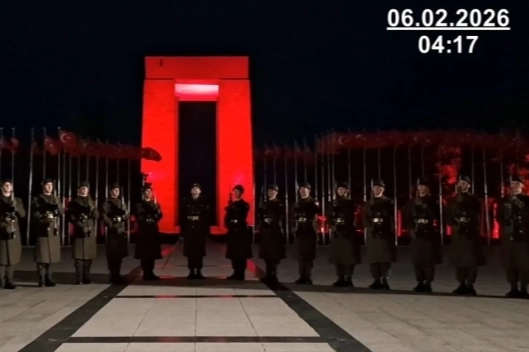Paylaşımda, görev başındaki Mehmetçiğin depremin gerçekleştiği dakikalarda Türk bayrağının altında saygı duruşunda bulunduğu görüntülere de yer verildi.