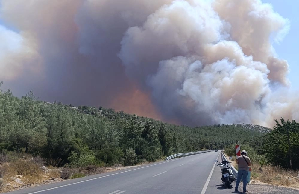 Alınan bilgiye göre, ilçeye bağlı Çaltı Mahallesi'nde Kırtıl Tepesi Gözetleme Kulesi önündeki ormanlık alanda yangın çıktı.