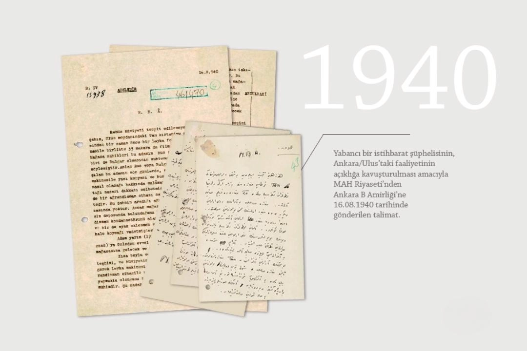 Bu belge, yabancı bir istihbarat şüphelisinin Ankara'nın Ulus semtindeki faaliyetinin açıklığa kavuşturulması amacıyla "aceledir" ibaresiyle gönderilen 16 Ağustos 1940 tarihli istihbarat raporu oldu.