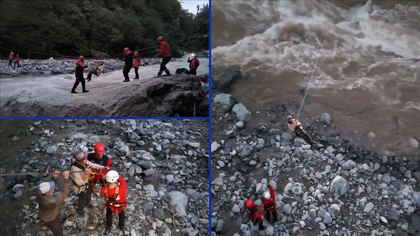 Dere üzerinden iple karşıya geçen ekipler, H.M'ye ulaştı.