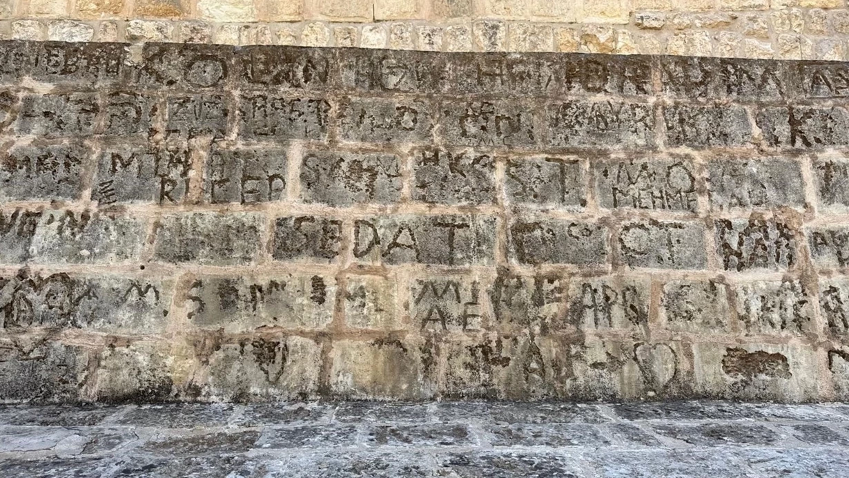 Onlarca asrın izlerini taşıyan yapı, depremlere rağmen ayakta dururken, bölgeye giden bazı vatandaşlar isimlerini yapının taşlarına kazıdı.