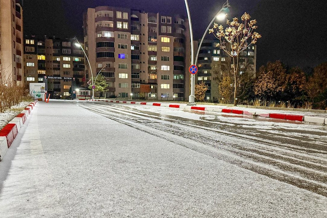 Kısa süre etkili olan dolunun ardından cadde ve sokaklar ile araçlar beyaza büründü.