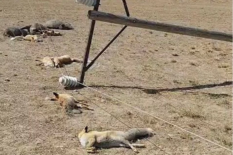 Görüntülerde, devrilen ağaç direğe bağlı enerji hattı boyunca tilki ve yaban domuzu gibi birçok yaban hayvanının cansız bedenleri görülüyor.