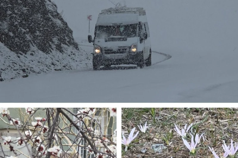 Dağlık alanlarda beyaza bürünen manzaralar ile kent merkezindeki çiçek açmış ağaçlar, aynı il sınırları içinde iki farklı mevsimin yaşandığını gözler önüne seriyor.