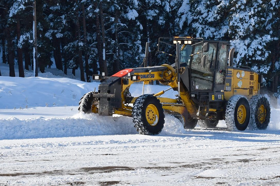 İl Özel İdaresi Yol ve Ulaşım Hizmetleri Müdürlüğüne bağlı ekipler, sahada karla mücadele çalışmasını sürdürüyor.