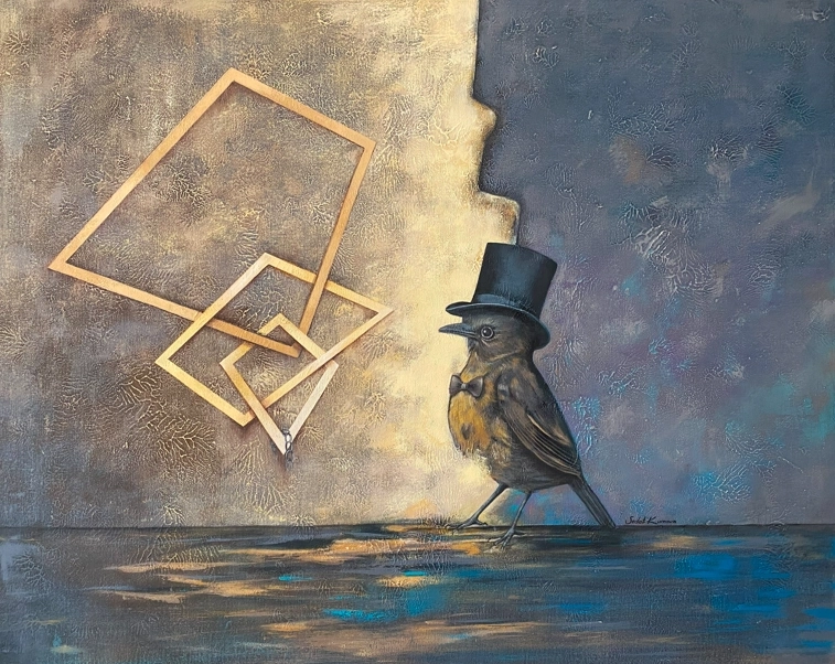 Sanatçı Sedat Kumova, yeni sergisi “Kuş Bakışı” ile doğaya ve insana dair gözlemlerini kendine özgü bir dille izleyiciye sunuyor. Sergideki resimlerde kuşlar, insani duruşlar, ifadeler ve aksesuarlarla betimleniyor; ancak ne uçuyor ne de ötüyorlar. Onlar izliyor, düşünüyor ve duruyor. Bazen hafif bir gülümsemeyle, bazen başlarını yana eğmiş hâlde… Tıpkı insanlar gibi.