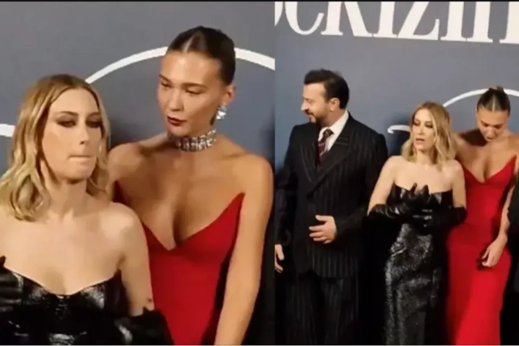 Galada ekibin birlikte fotoğraf için yan yana geldiği sırada yer krizi yaşandı. Haluk Bilginer'in yanında pozisyon almak isteyen Hazal Kaya, arkadaşlarının önüne geçme pahasına hamle yaptı.