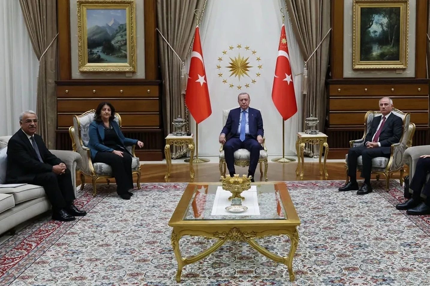 10 Nisan'da Van Milletvekili Pervin Buldan ve yaşamını yitiren TBMM Başkanvekili ve İstanbul Milletvekili Sırrı Süreyya Önder’den oluşan DEM Parti İmralı Heyeti, Cumhurbaşkanı Erdoğan ile Beştepe’de bir araya geldi.