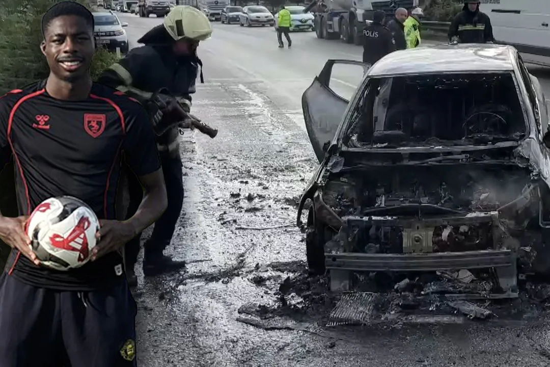 Samsunspor'un yıldız futbolcusu Anthony Musaba'nın kullandığı otomobil seyir halindeyken alev aldı.