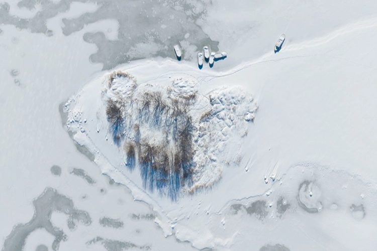 Fotoğraf sanatçısı Barış Kartpak, kış fotoğrafları çekmek için Gaziantep'ten geldiğini belirterek, "Nazik Gölü donmuş, birçok tekne buzların arasında kalmış. Güzel bir doğa manzarası var." dedi.