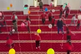 Bursa'nın Karacabey ilçesine bağlı Dağkadı Mahallesi'nde görev yapan imam ve eşi, çocukların camiye olan ilgisini artırmak amacıyla camiyi balon ve çeşitli süslemelerle donattı. Çocukların camiyi ziyaretinde renkli görüntüler oluştu.