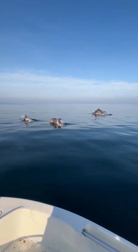 Bursa'nın Mudanya ilçesinden ailesi için balık tutmak isteyen balıkçı, yanına aldığı oltalarla teknesiyle sahilden ayrıldı. Belli bir süre gittikten sonra kendisine eşlik eden yunusları gören balıkçı, kimi zaman onlarla birlikte ilerledi, kimi zaman ise yaptıkları dansı izledi.
