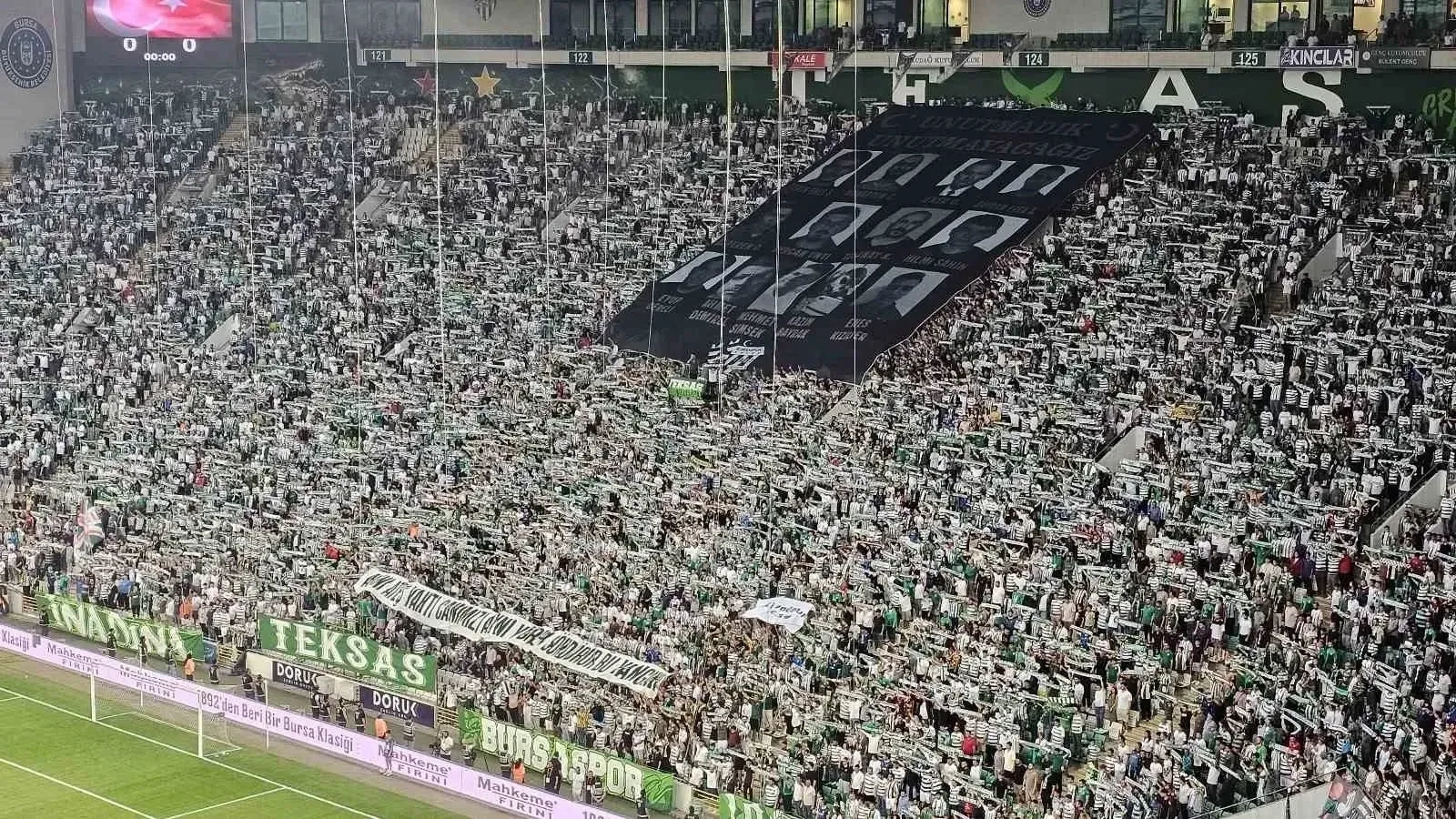 Yeşil-beyazlı taraftarlar, üzerinde "Aynı ateş yaktı canımızı aynı yürek söndürür bu yangını" yazılı pankart açarak birlik mesajı verdi. Ayrıca hayatını kaybeden şehitlerimizin isimleri ve fotoğraflarının yer aldığı pankart tribünlerde sergilendi.