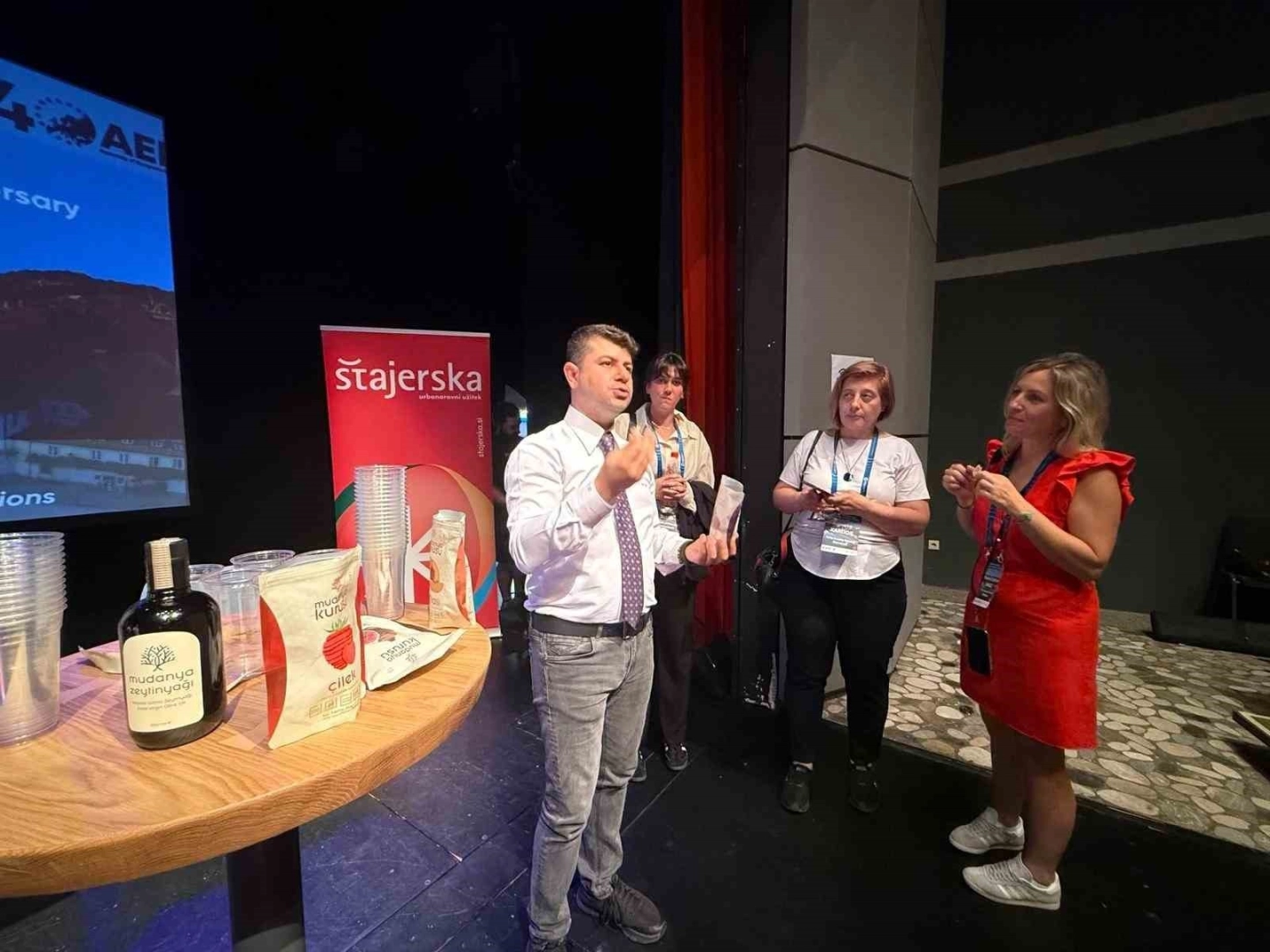 24-26 Haziran tarihlerinde Slovenya’nın Maribor kentinde gerçekleştirilen AER Genel Kurulu’nda Mudanya adına sunum yapan Baran Güneş, Myrleia Antik Kenti’nden başlayarak kentin binlerce yıllık tarihini, doğal güzelliklerini ve turistik değerlerini anlattı. Mudanya Mütarekesi’ne vurgu yapan Güneş, kentin "Barışın Başkenti" kimliğiyle öne çıktığını belirtti.