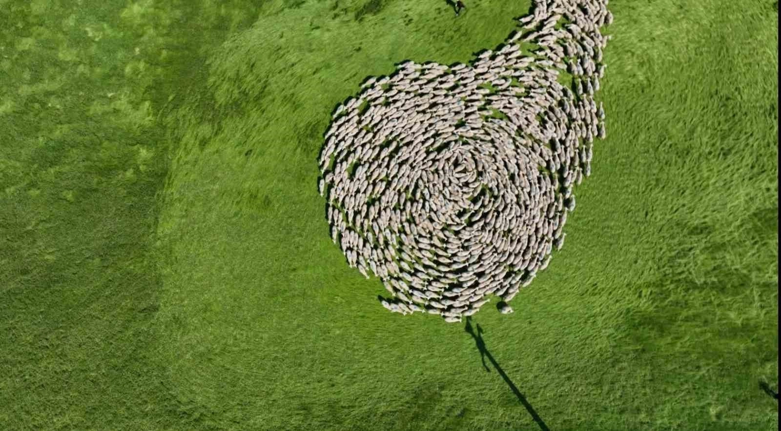 Gökyüzünden çekilen bu eşsiz görüntüler, doğayla iç içe hayvancılığın sanatsal bir anlatıma dönüştüğünü gözler önüne serdi. 20 bin küçükbaş hayvanın meralarda otlatıldığı işletmede, çobanlar tarafından yönlendirilen sürünün senkronize hareketi, izleyenleri adeta mest etti. Çobanların yönlendirmesiyle oluşan bu dairesel hareketin gökyüzünden görüntüsü, adeta bir dans gösterisini andırdı.