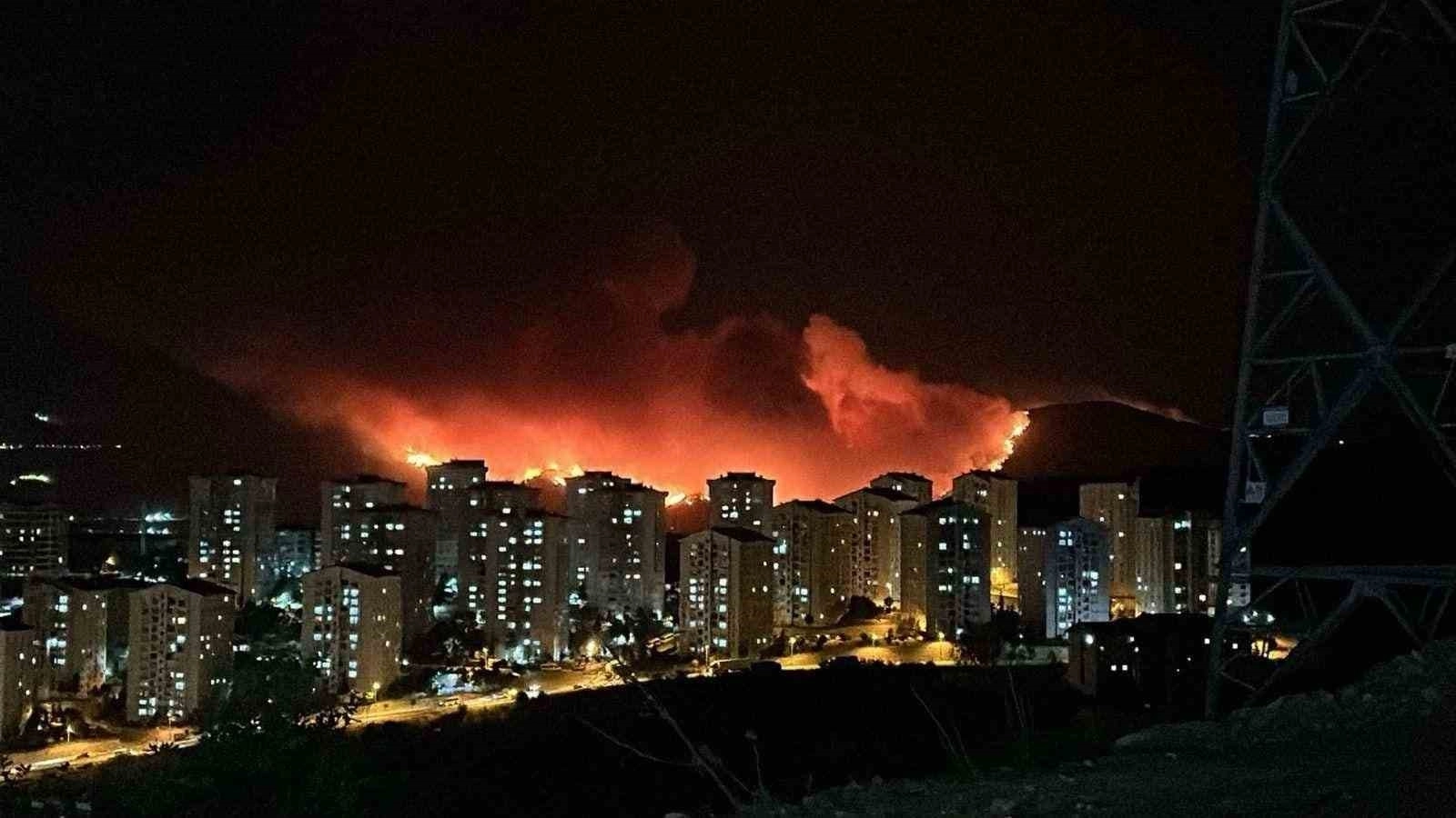 Vadide kalan köy, tepedeki alevlerin tehdidi altında. Geceyi kızıla boyayan yangına karşı ekiplerin ve vatandaşların mücadelesi sürüyor. Yükselen alevler dron ile havadan görüntülendi.