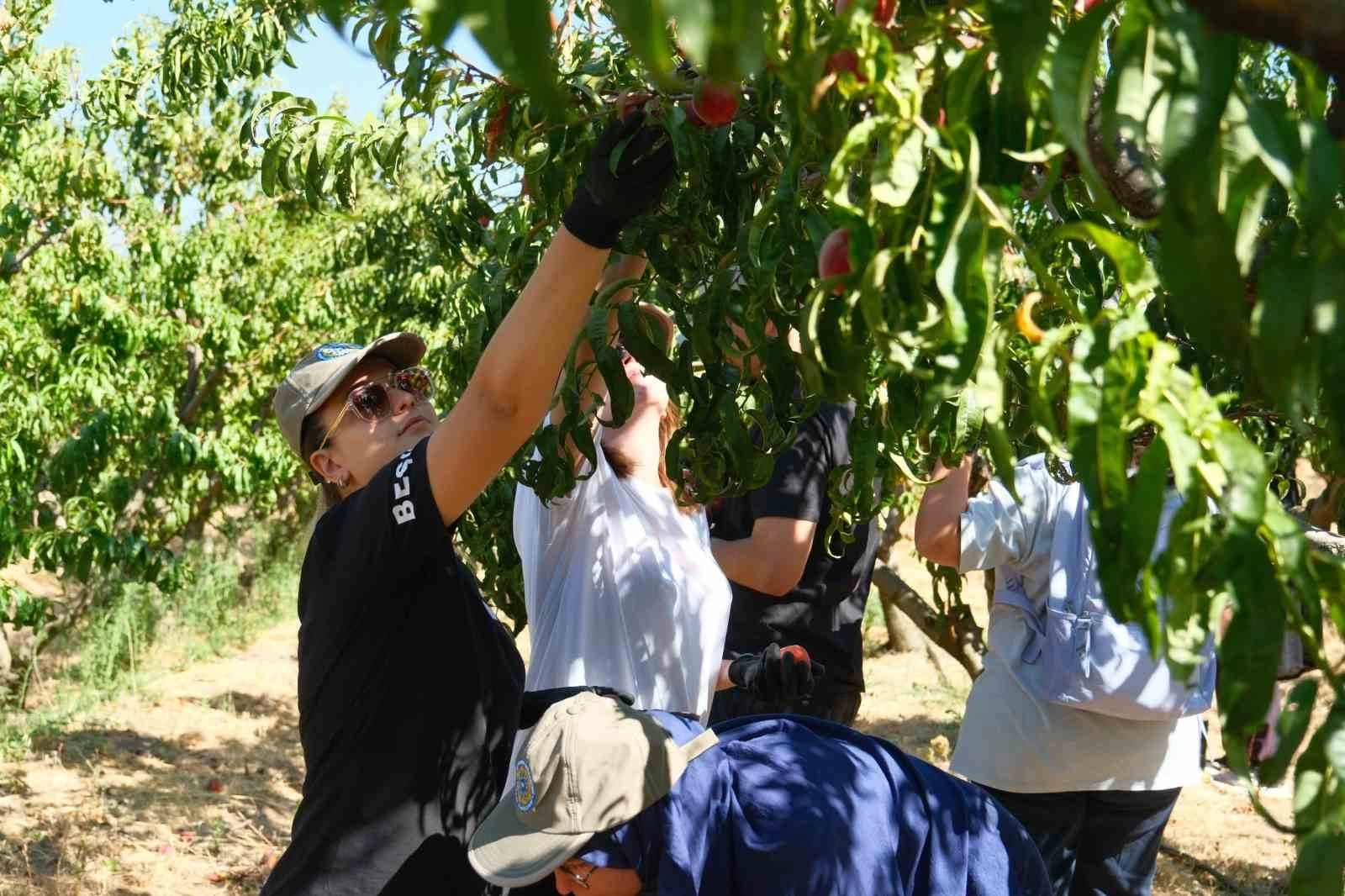 "İkinci sınıf öğrencileri çiftlik stajı yapıyor. 9 bölümün öğrencileri hasat ediyor. Eylül sonuna kadar sürüyor. Öğrenciler nektarin ve şeftali çeşitlerini tanıyorlar. Şeftalide ne var hasadı nasıl yapılıyor görmüş oluyorlar. Bitki koruma öğrencileri hastalık ve zararlılarını öğreniyorlar. Hem onların öğrenmesini sağlıyoruz hem üretim yaparak döner sermayeye katkı sağlıyoruz hem de üreticilere yol gösterici çalışmalar yürütüyoruz. Öğrenciler, koleksiyon bahçesinde okuldan sonraki hayatları için tecrübe kazanıyor."