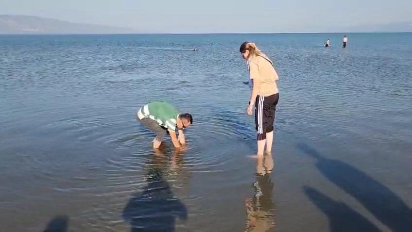 İznik Gölü’nün Orhangazi sahilinde tarihi eser olduğu değerlendirilen çok sayıda sütun başlığı bulundu.