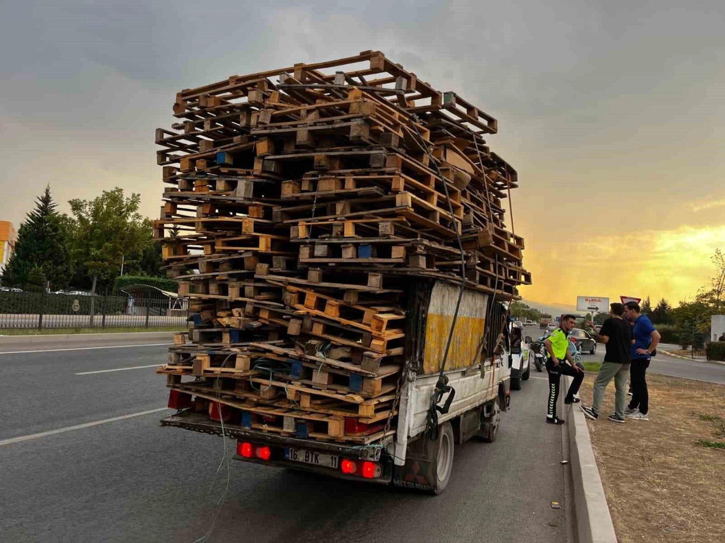 Olay, saat 19.00 sıralarında Bursa-Ankara karayolu üzeri İnegöl girişinde meydana geldi. Sosyal medyaya yansıyan görüntüler üzerine polis ekipleri harekete geçti. Karayolunda tehlikeli nakliyat işi yapan sürücü İnegöl girişinde İnegöl Emniyet Müdürlüğü Trafik Büro Amirliği ekiplerince durduruldu.
