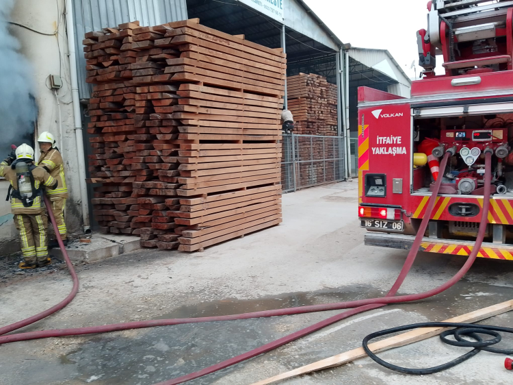Mahmudiye Mahallesi Kafkas Sokak'ta faaliyet gösteren kereste deposunda henüz bilinmeyen nedenle yangın çıktı.