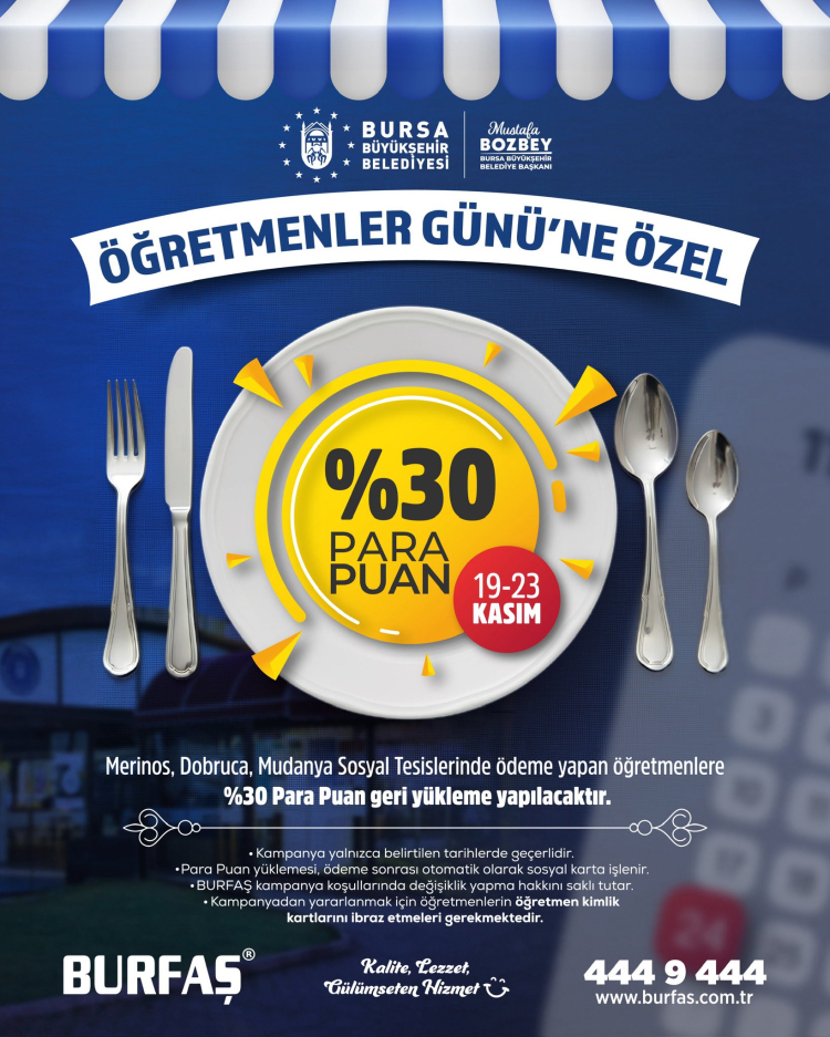 Bursa Büyükşehir Belediyesi iştiraklerinden Burfaş, 24 Kasım Öğretmenler Günü dolayısıyla öğretmenlere özel bir kampanya başlattı.