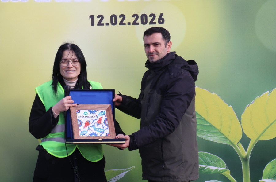 Konuşmaların ardından Bursa BUSADER Başkanı Dr. Fatma Akalp, Bursa Orman Bölge Müdürlüğü Ağaçlandırma Şefi Ali Yaşar Ulusoy'a 'fidan dikme sertifikası' ile üzerini İznik çinisi lâle motiflerinin şekillendirdiği plaket takdim etti.