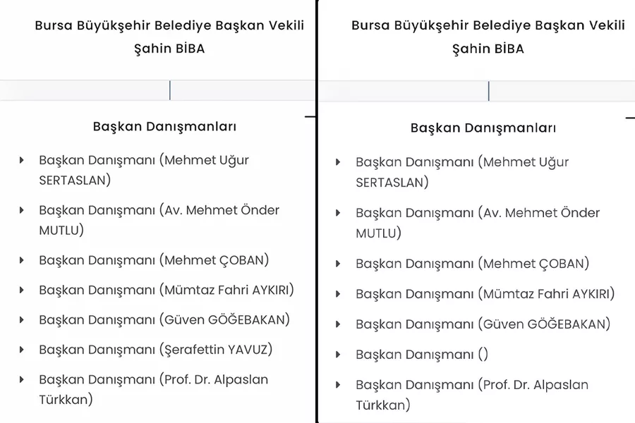 Bursa Büyükşehir Belediyesi’nde son dönemde dikkat çeken yönetim değişiklikleri devam ediyor. Üst kadrolarda yapılan düzenlemeler kapsamında, başkan danışmanları arasında yer alan Şerafettin Yavuz’un ismi belediyenin idari organizasyon yapısında artık yer almadı.