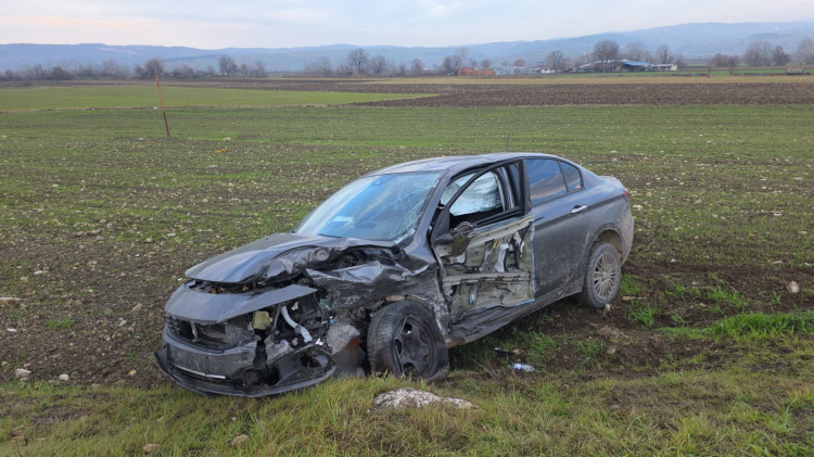 Çarpışmanın etkisiyle Yunus Emre T'nin kullandığı otomobil, yoldan çıkarak tarlaya savruldu.
